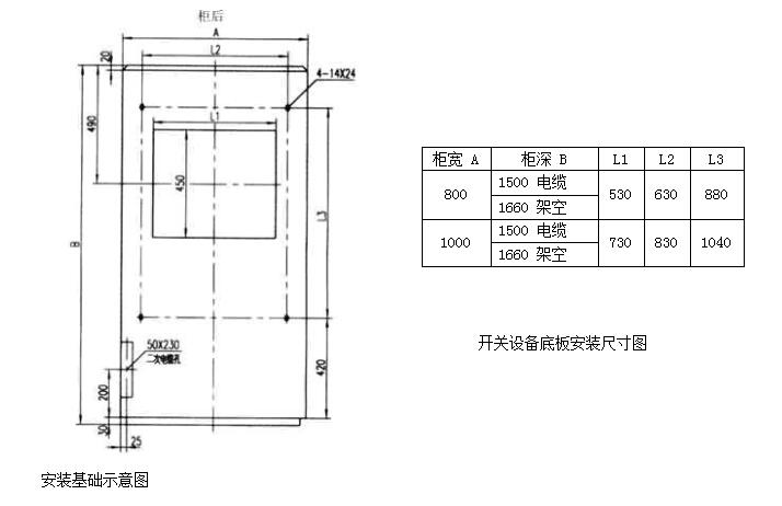 開關柜面對面靠墻安裝示意圖